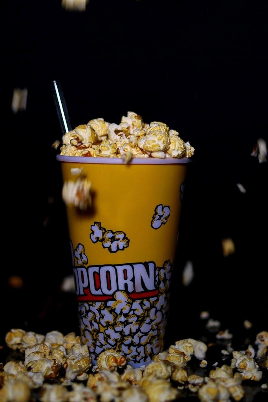 Seedlip Spice 94, selbstgemachter Popcorn Sirup, frischer Zitronensaft, Eis & Popcorn